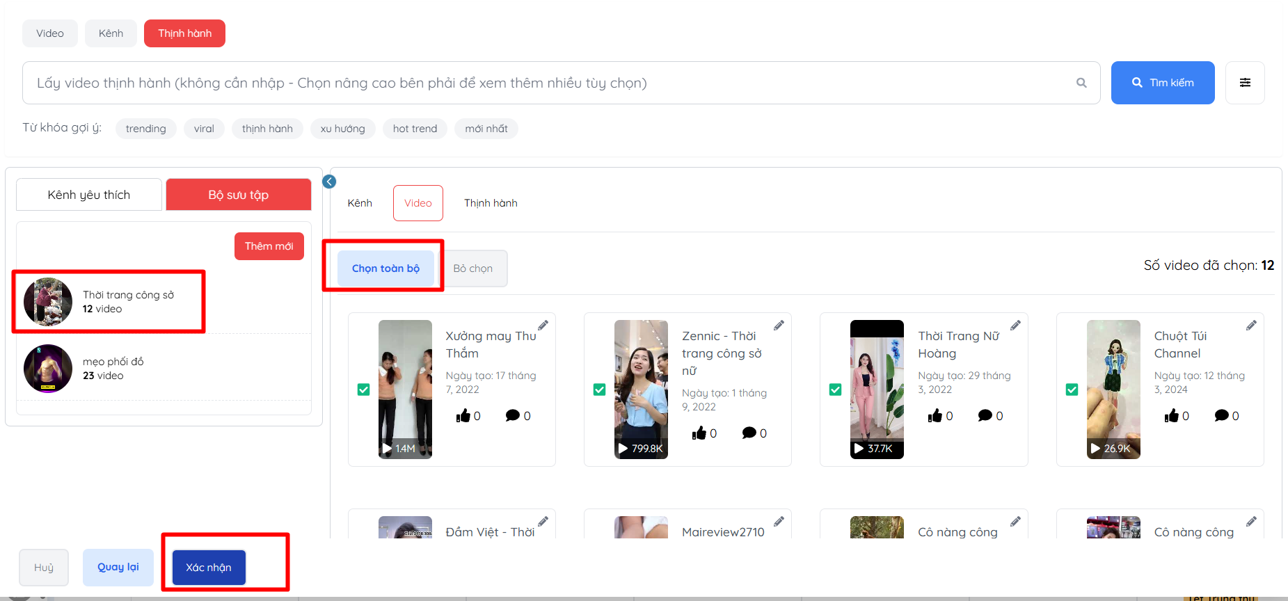 Chọn bộ sưu tập đã tạo, chọn toàn bộ video bên trong: