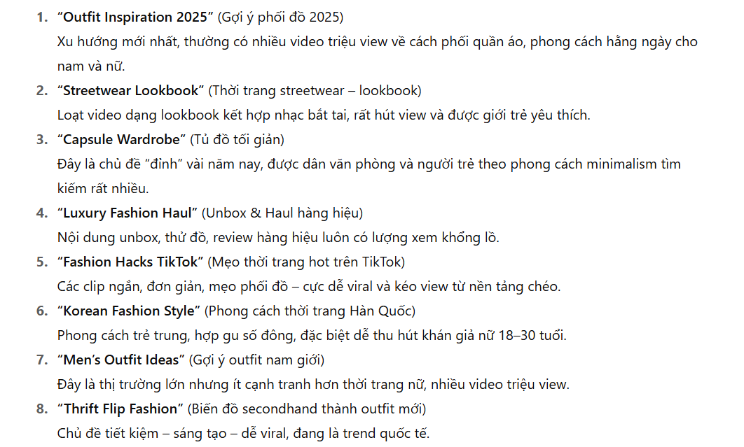 Hoặc bạn có thể gõ từ khóa bất kì mà bạn biết để tìm mà không cần ChatGPT, ví dụ từ khóa “Thời trang”, “Sức khỏe”…