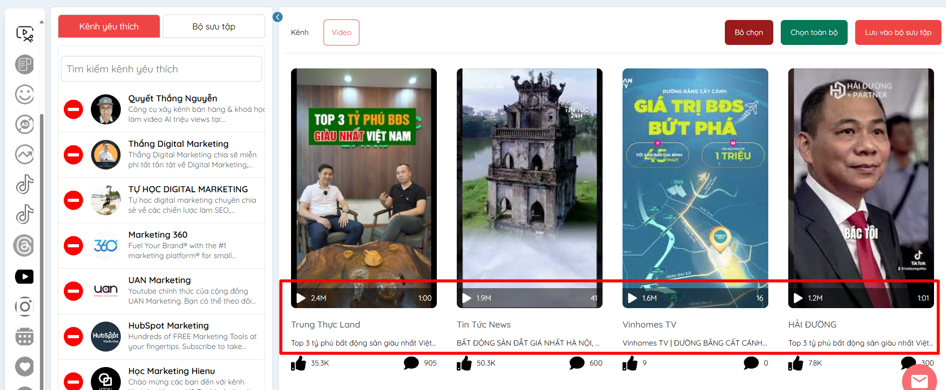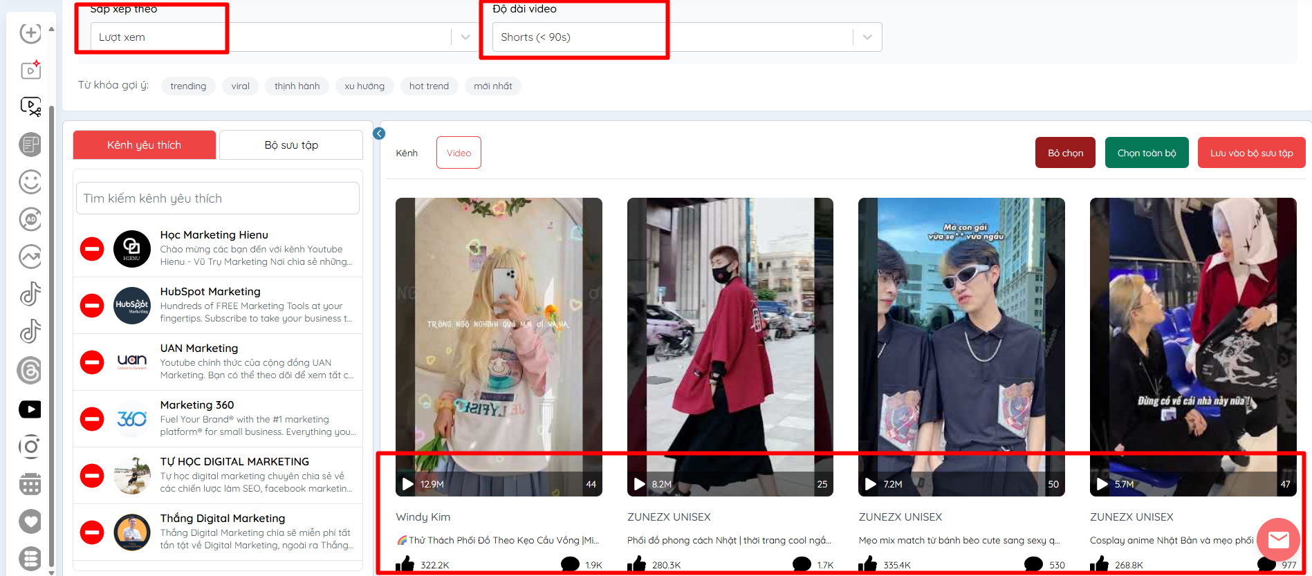 Tại Kingcontent.pro, vào menu QUẢN LÝ YOUTUBE, gõ các từ do chatgpt gợi ý để tìm video liên quan: