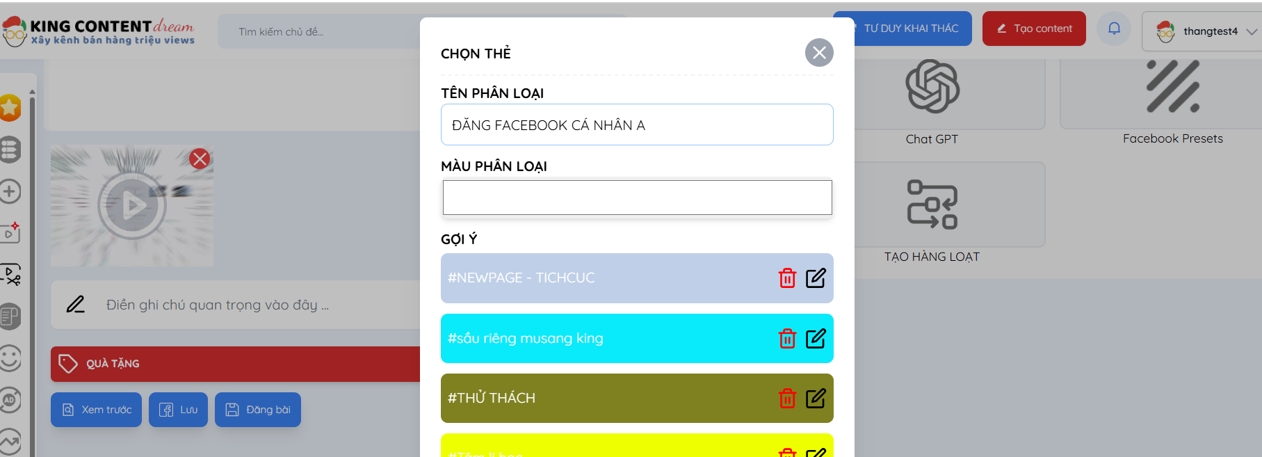 Tại Kingcontent.pro, vào menu TẠO CONTENT MỚI