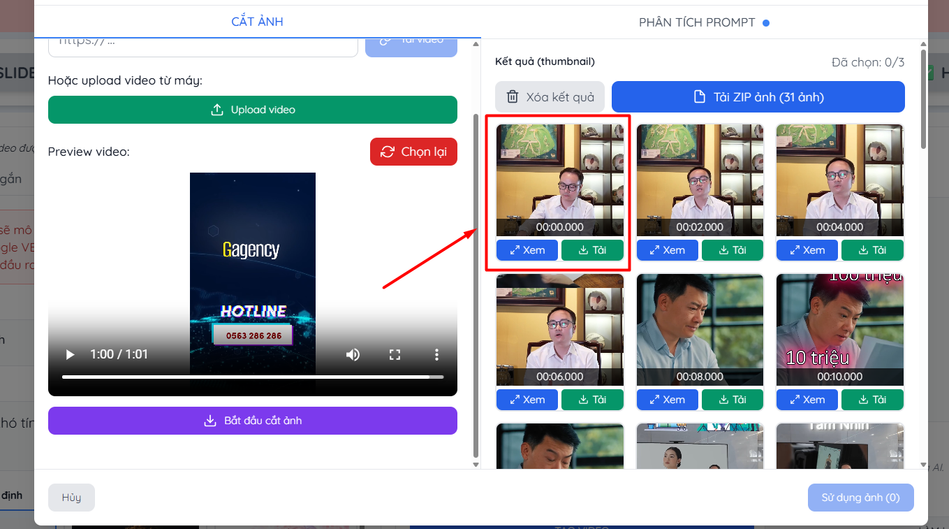 Thử tiếp một video khác, mình xin phép sử dụng video gốc trên kênh Gagency Marketing (anh sếp này đẹp trai quá), kênh này chia sẻ rất nhiều kiến thức hay mọi người nên theo dõi. Đưa link video vào kingcontent.pro để cắt ảnh:
