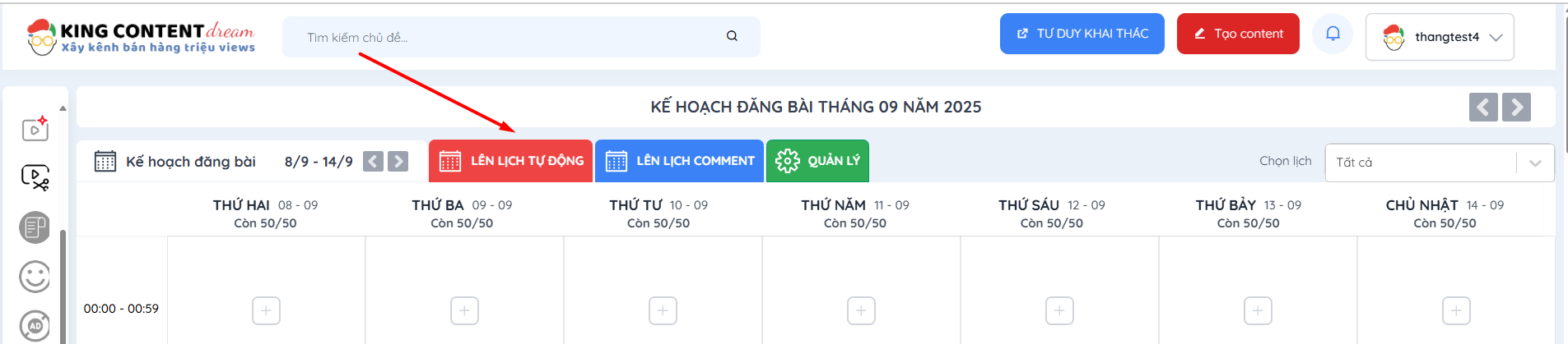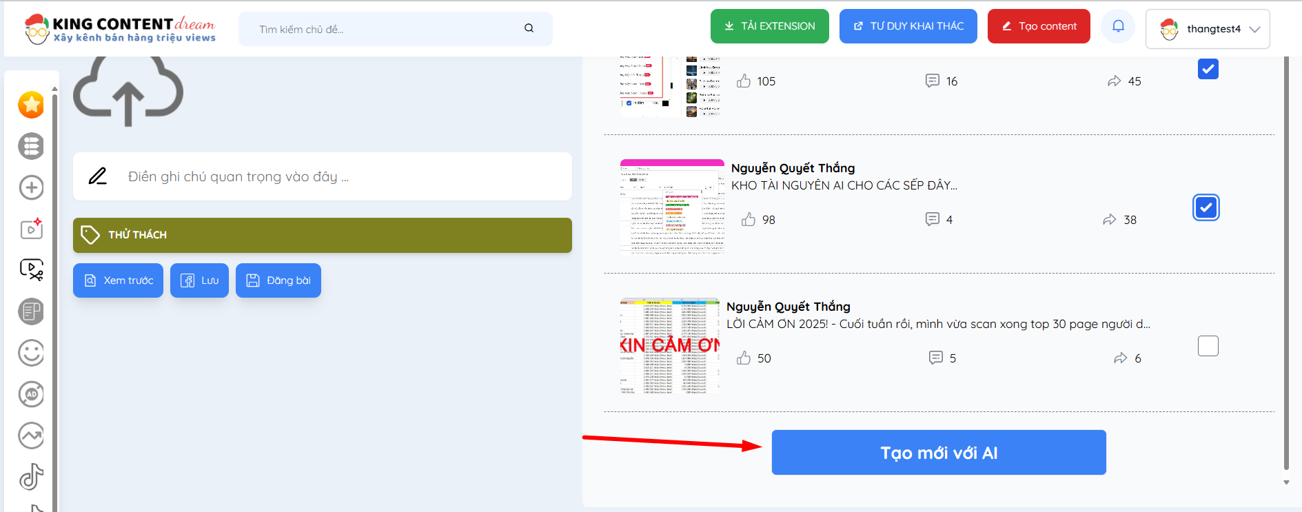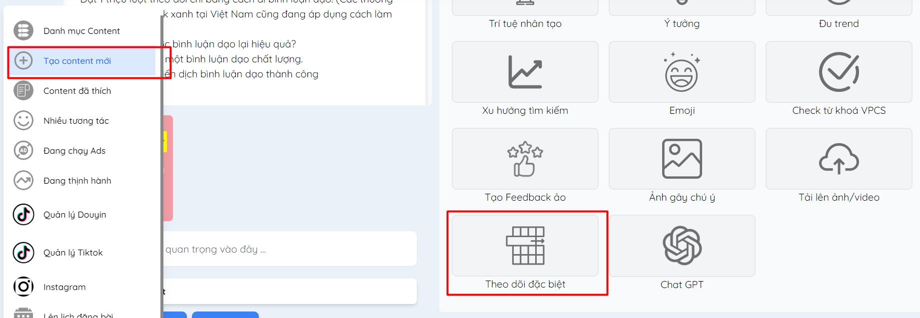 Tại Kingcontent.pro, vào menu TẠO CONTENT MỚI, lập kế hoạch rồi bấm menu THEO DÕI ĐẶC BIỆT