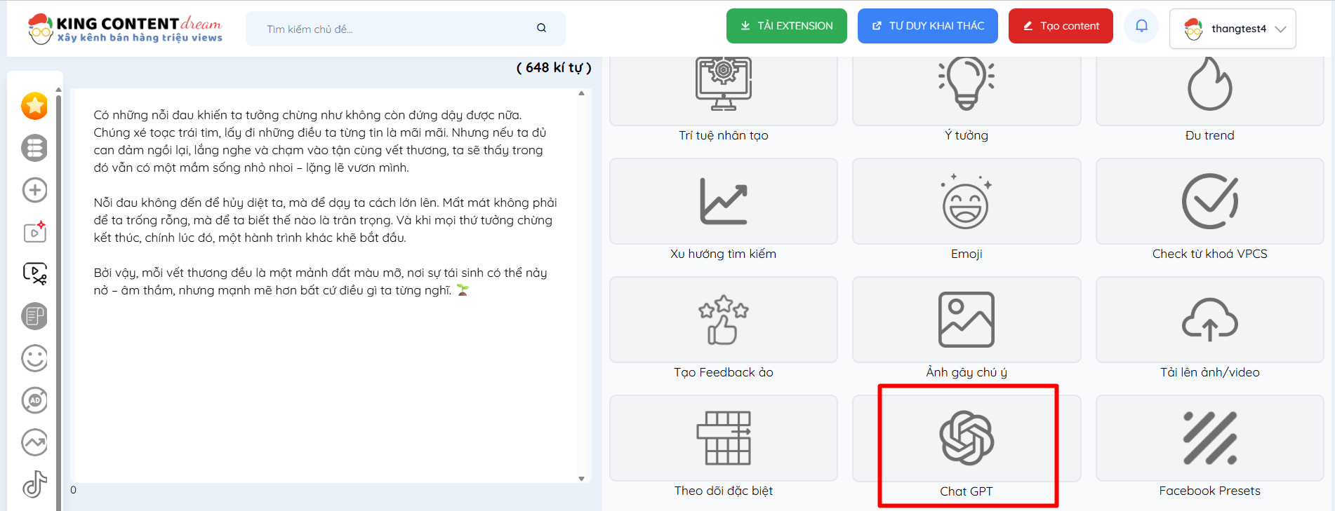 Có nội dung gốc rồi bạn vào lại biểu tượng CHATGPT: