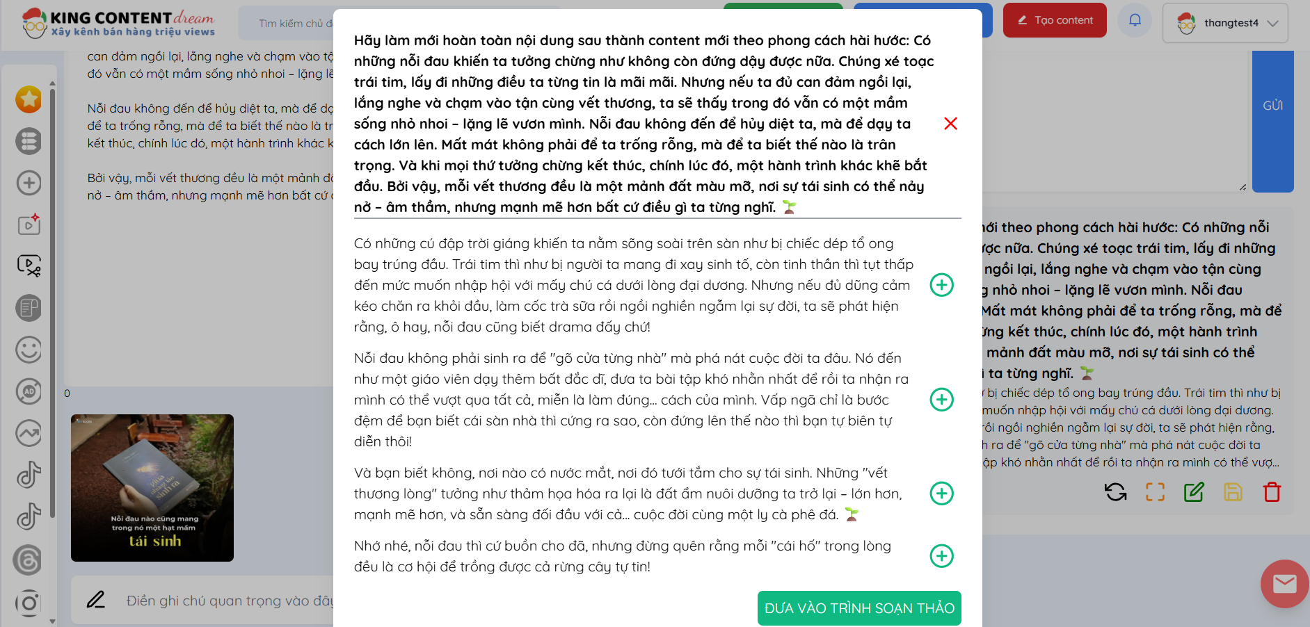 Tại sao không tự tìm content đó trên Facebook rồi copy vào trình soạn thảo? Vì sử dụng chức năng này tại Kingcontent bạn sẽ lọc được các bài viết nào được nhiều lượt tương tác nhất, chỉnh sửa lại nó với AI & lên lịch đăng lại hàng loạt nhanh chóng.
