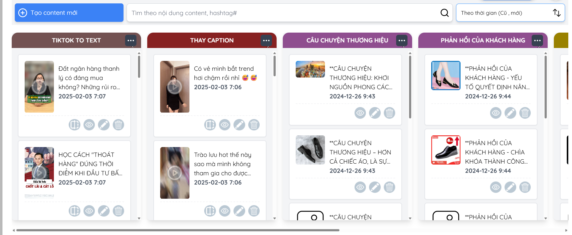Tất cả những content đã tạo từ đối thủ đều nằm ở đây: